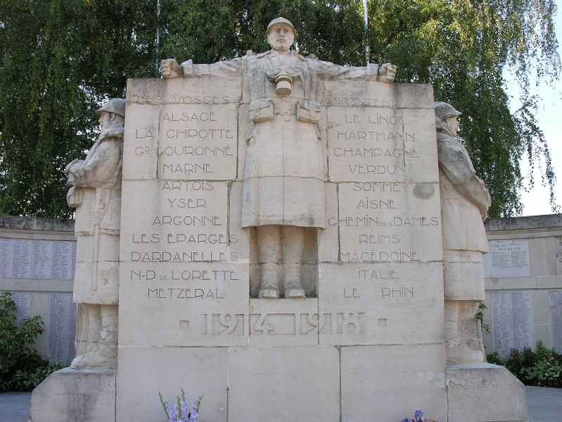 Le monument est inauguré en 1922, est de P.Bridault, architecte et de E.J.Bachelet et I.Hurcy. Au centre, un poilu avec masque à gaz sur la poitrine et les bras étendus. Un autre poilu tient une pelle et une pipe dans ses mains et un second avec une longue barbe en tenue hivernale tient un fusil. Derrière se trouve un grand mur en léger arc de cercle comporte les listes des morts de 1914-18 en bas et de 1939-45 dans la partie supérieure.
